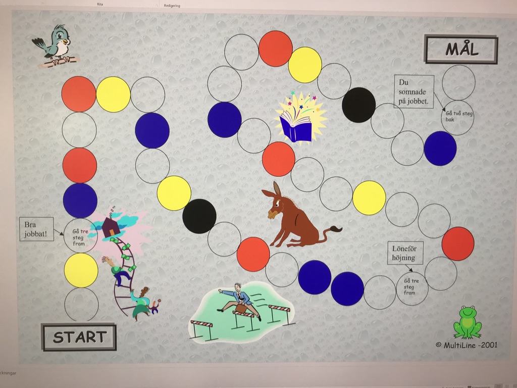Varje gång de kom till en färgad prick fick de dra en lapp. Under en färg fanns de vanliga APT-punkterna med. Så vi hann med det som APT ska innehålla, men också andra frågor.