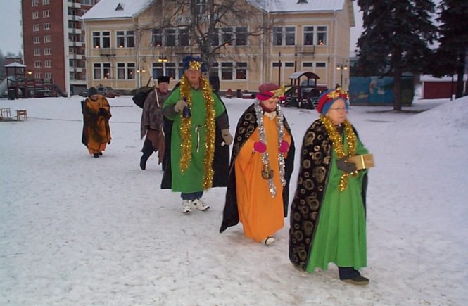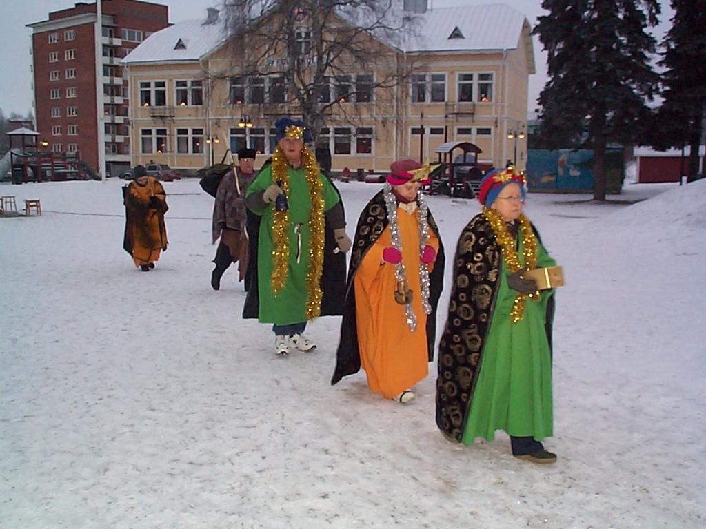 Den första advent samlades hela församlingen till en adventsGudstjänst. Ljusen lyste så vackert i kyrkan och de sjöng tillsammans alla de välkända adventsångerna. Alla kände sig glada och nöjda. Speciellt pensionärsgruppen såg väldigt nöjd ut, utom Ylva. Ute gnistrade snön och temperaturen var – 27 grader och nästa dag skulle julvandringen börja om bara temperaturen sjönk vill säga.