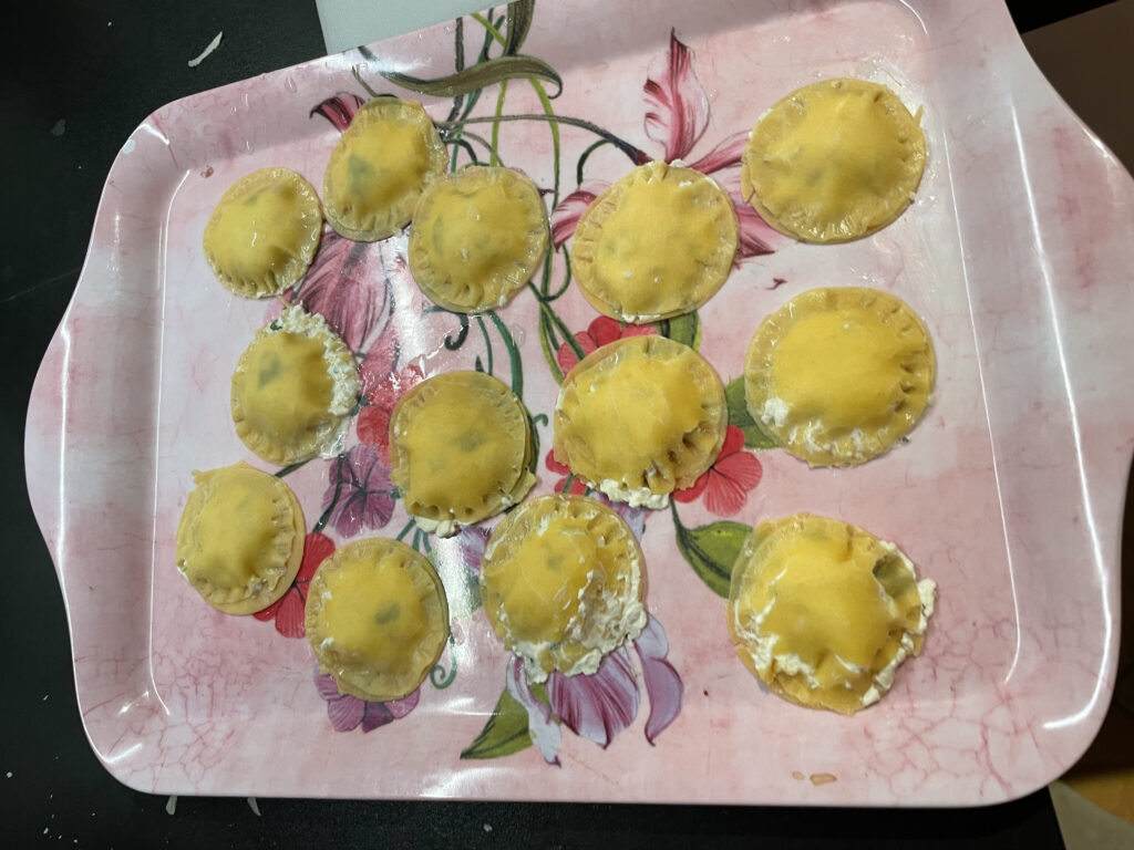 Jag gjorde några ravioli och lite spaghetti. Raviolin misslyckades då fyllningen föll ur raviolin. Men som tur var hade jag extra fyllning, så jag serverade dem med fyllningen ovanpå. Det blev riktigt gott.